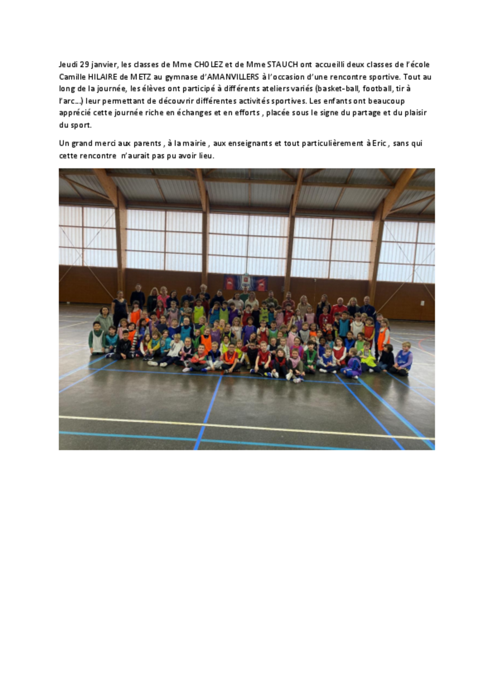 Jeudi 29 janvier 2026, les classes de Mme CHOLEZ et de Mme STAUCH ont accueilli deux classes de l’école Camille HILAIRE de METZ…